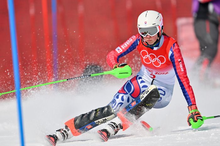2月9日,北京2022年冬奧會高山滑雪女子回轉(zhuǎn)比賽進(jìn)行,斯洛伐克選手彼得拉·弗爾霍娃在比賽中。新華社記者 陳益宸 攝